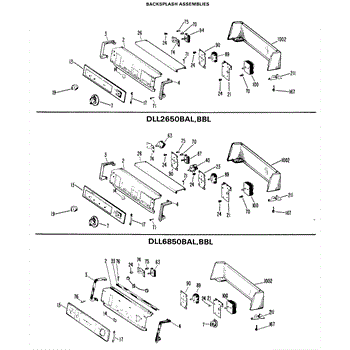 Parts for Ge DLL2650BAL: 01 - Backsplash Assemblies Parts