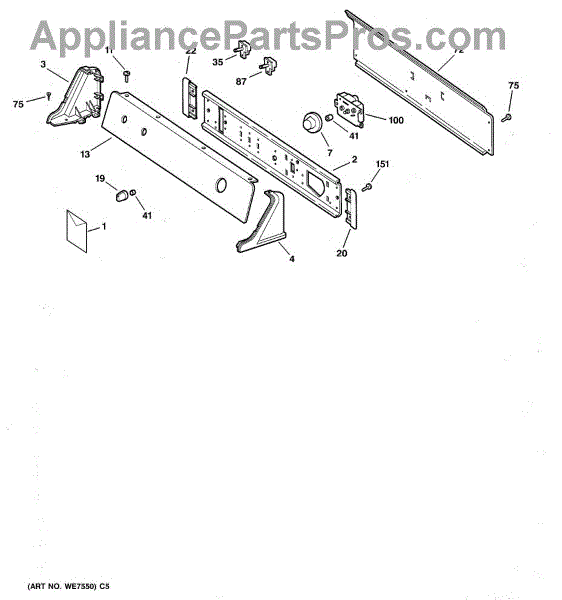 Parts for Ge DBXR453GT5WB: 01 - Backsplash Assembly Parts
