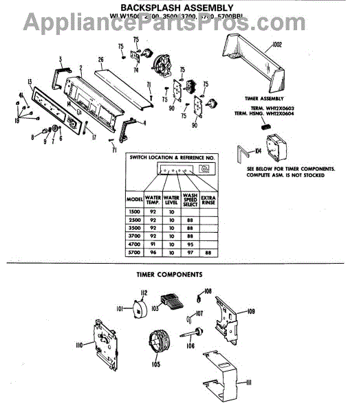 Parts for Ge WLW1500BBL: 01 - Backsplash Assembly Parts