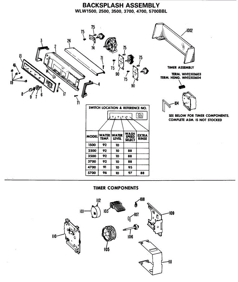 Parts for Ge WLW3500BBL: 01 - Backsplash Assembly Parts