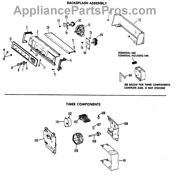 Parts for Ge WLW3750BAL: 01 - Backsplash Assembly Parts