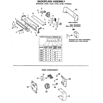 Parts for Ge WLW4700BAL: 01 - Backsplash Assembly Parts