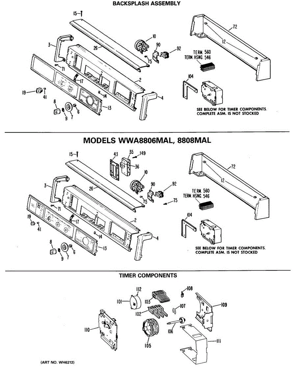 Parts for Ge WWA8806MAL: 01 - Backsplash Assembly Parts