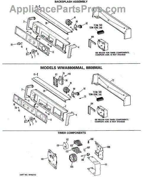 Parts for Ge WWA8808MAL: 01 - Backsplash Assembly Parts