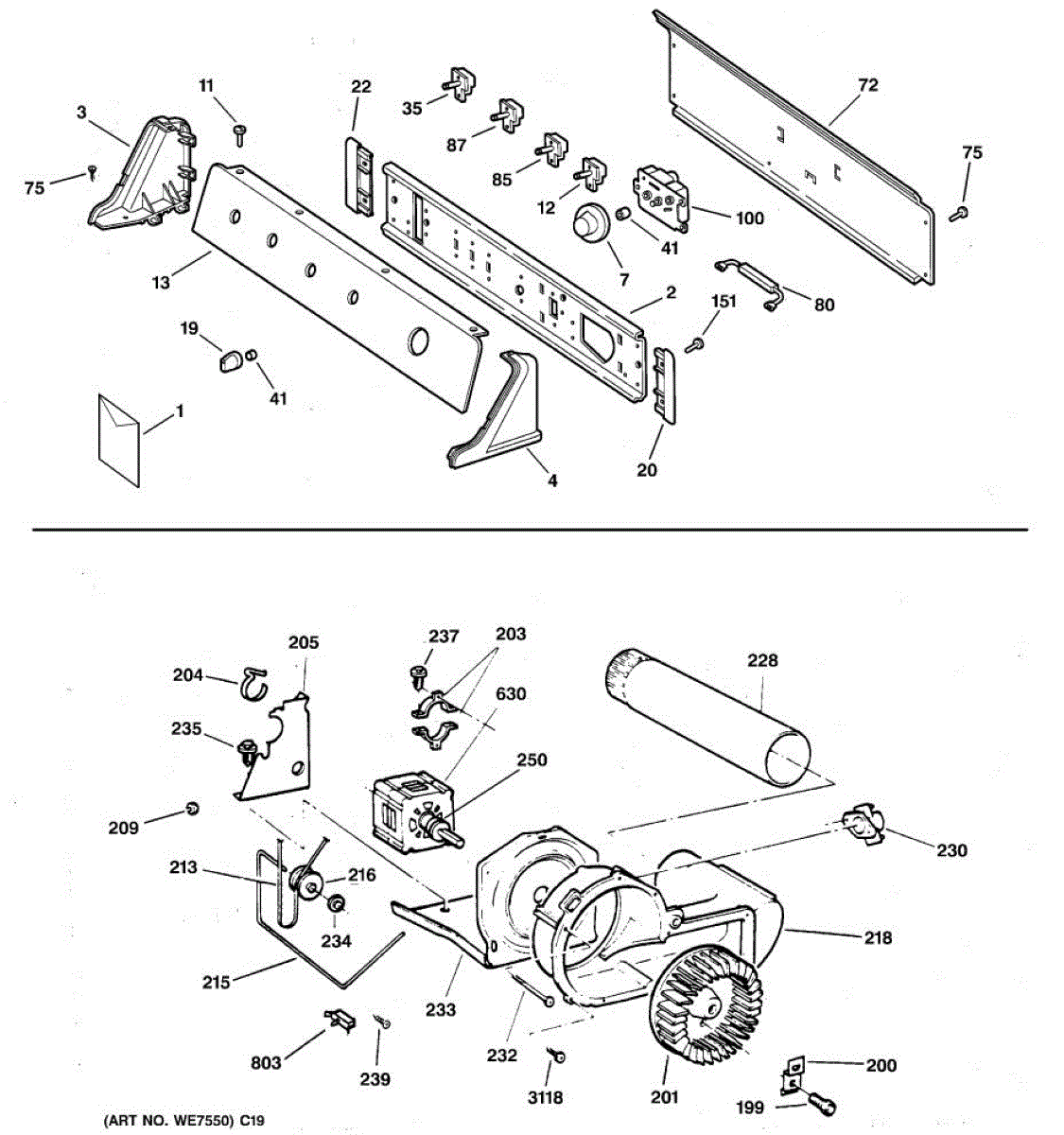 The Blower Wheel is an OEM replacement part for GE dryers. It has a role in the air circulation within the dryer, aiding in the even and efficient drying of clothes. The blower wheel, connected to the motor, helps in expelling the moist air out of the dryer through the exhaust vent during the drying cycle. Causes of a malfunctioning blower wheel are typically wear and tear from regular use, the accumulation of lint or debris, or damage to the wheel’s fins or central hub, which can impact its rotation and air circulation capability. Symptoms of a bad Blower Wheel include: