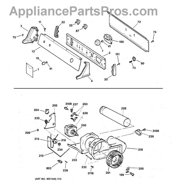 The Blower Wheel is an OEM replacement part for GE dryers. It has a role in the air circulation within the dryer, aiding in the even and efficient drying of clothes. The blower wheel, connected to the motor, helps in expelling the moist air out of the dryer through the exhaust vent during the drying cycle. Causes of a malfunctioning blower wheel are typically wear and tear from regular use, the accumulation of lint or debris, or damage to the wheel’s fins or central hub, which can impact its rotation and air circulation capability. Symptoms of a bad Blower Wheel include: