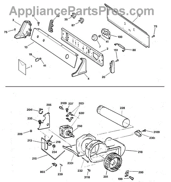 The Blower Wheel is an OEM replacement part for GE dryers. It has a role in the air circulation within the dryer, aiding in the even and efficient drying of clothes. The blower wheel, connected to the motor, helps in expelling the moist air out of the dryer through the exhaust vent during the drying cycle. Causes of a malfunctioning blower wheel are typically wear and tear from regular use, the accumulation of lint or debris, or damage to the wheel’s fins or central hub, which can impact its rotation and air circulation capability. Symptoms of a bad Blower Wheel include: