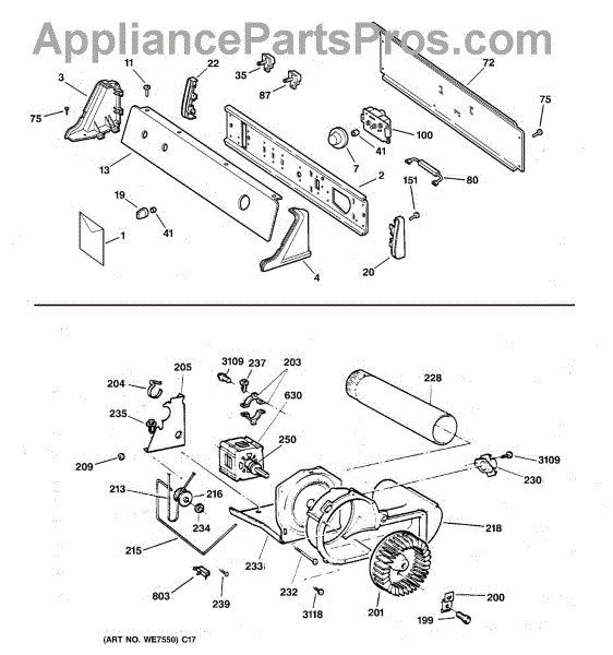 • Drives the drum via the belt and turns the blower wheel for airflow