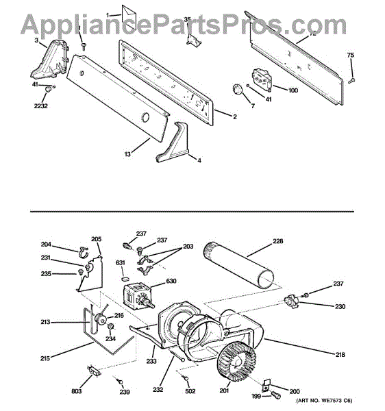 The Blower Wheel is an OEM replacement part for GE dryers. It has a role in the air circulation within the dryer, aiding in the even and efficient drying of clothes. The blower wheel, connected to the motor, helps in expelling the moist air out of the dryer through the exhaust vent during the drying cycle. Causes of a malfunctioning blower wheel are typically wear and tear from regular use, the accumulation of lint or debris, or damage to the wheel’s fins or central hub, which can impact its rotation and air circulation capability. Symptoms of a bad Blower Wheel include: