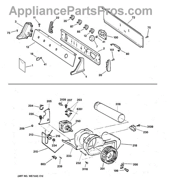 The Blower Wheel is an OEM replacement part for GE dryers. It has a role in the air circulation within the dryer, aiding in the even and efficient drying of clothes. The blower wheel, connected to the motor, helps in expelling the moist air out of the dryer through the exhaust vent during the drying cycle. Causes of a malfunctioning blower wheel are typically wear and tear from regular use, the accumulation of lint or debris, or damage to the wheel’s fins or central hub, which can impact its rotation and air circulation capability. Symptoms of a bad Blower Wheel include: