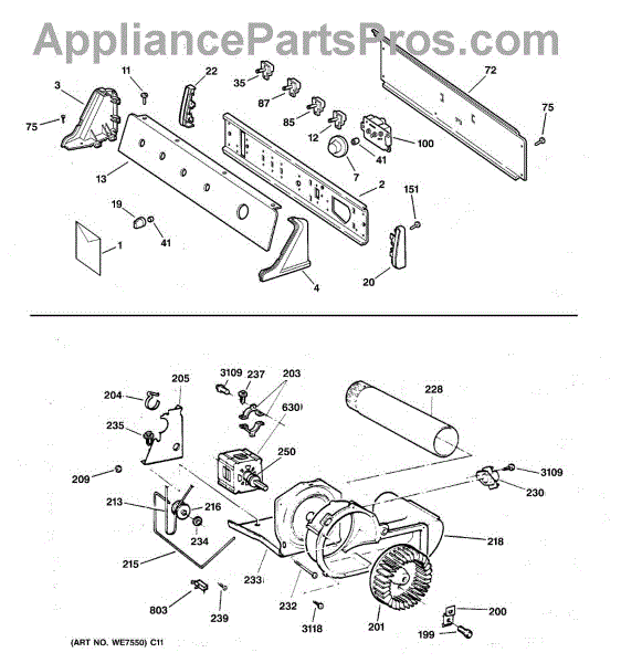 The Blower Wheel is an OEM replacement part for GE dryers. It has a role in the air circulation within the dryer, aiding in the even and efficient drying of clothes. The blower wheel, connected to the motor, helps in expelling the moist air out of the dryer through the exhaust vent during the drying cycle. Causes of a malfunctioning blower wheel are typically wear and tear from regular use, the accumulation of lint or debris, or damage to the wheel’s fins or central hub, which can impact its rotation and air circulation capability. Symptoms of a bad Blower Wheel include:
