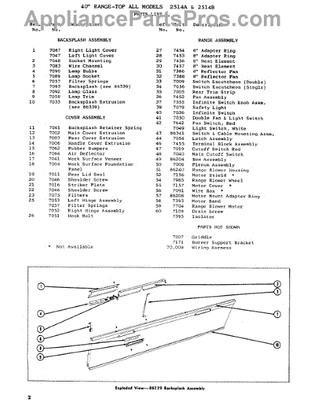 Parts for Jenn-Air 2513: 01 - Backsplash Parts