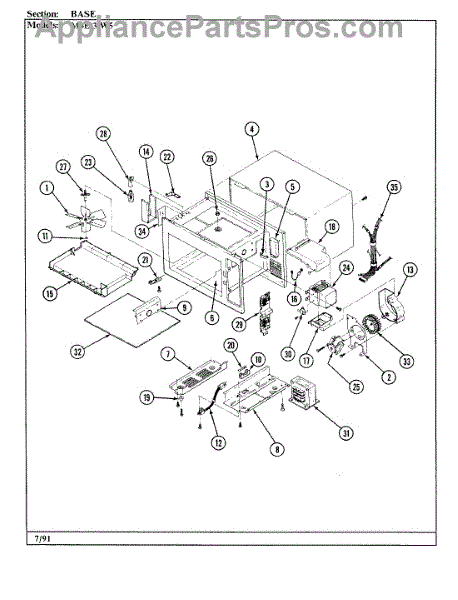 Parts for Magic Chef M5E-3-W5: 01 - Base & Cavity Parts
