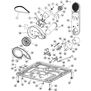 • Encloses and supports the blower wheel while channeling air from the drum to the exhaust