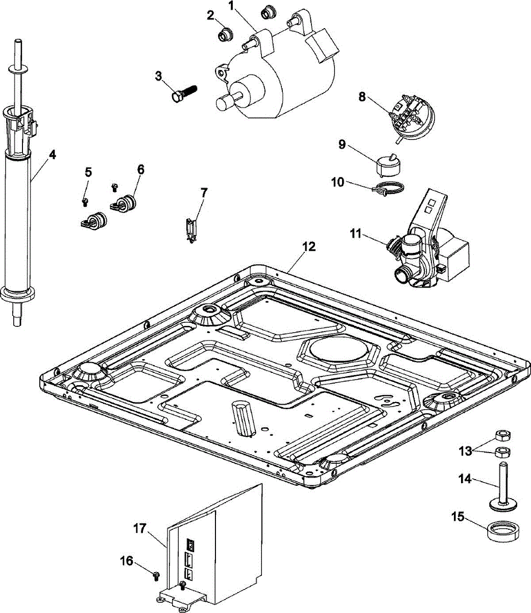 The Drain Pump Assembly is an OEM part for Whirlpool front-loading washing machines. Located within the bottom of the tub housing, this assembly pumps water out through the drain hose during drain cycles. Efficient water removal relies on a functioning drain pump.