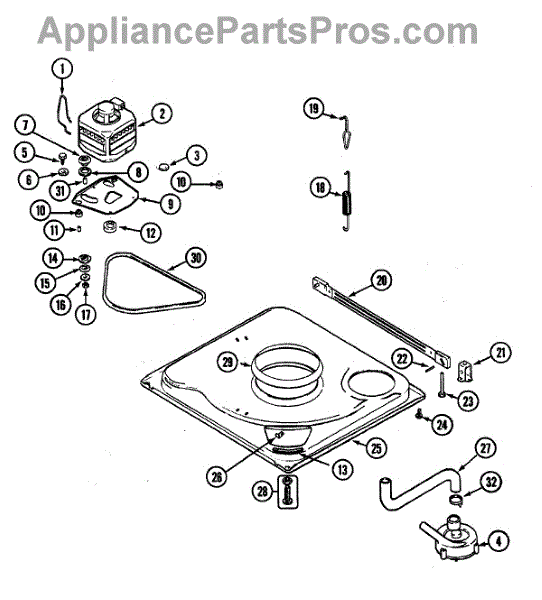 Note: This pump has been redesigned and the mounting plate is no longer required. It now mounts directly to the base of the washer.