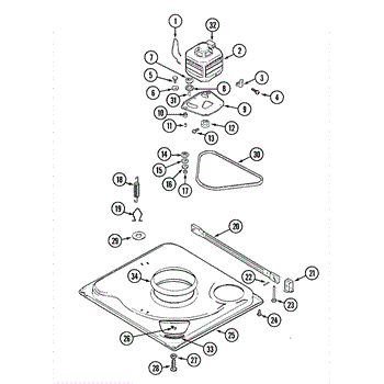 Drive belt transmits motor power to drum for wash and spin cycles. Replace if washer won't spin, makes noise, or belt shows wear. Confirm fit by model.