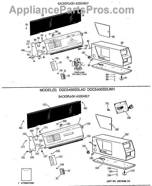 Parts for Ge DDC5000SDLAD: 01 - Basksplash Assembly Parts