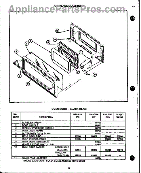 Parts for Amana EHA312-OP / EHA3120OP: 01 - All Black Glass Door Parts