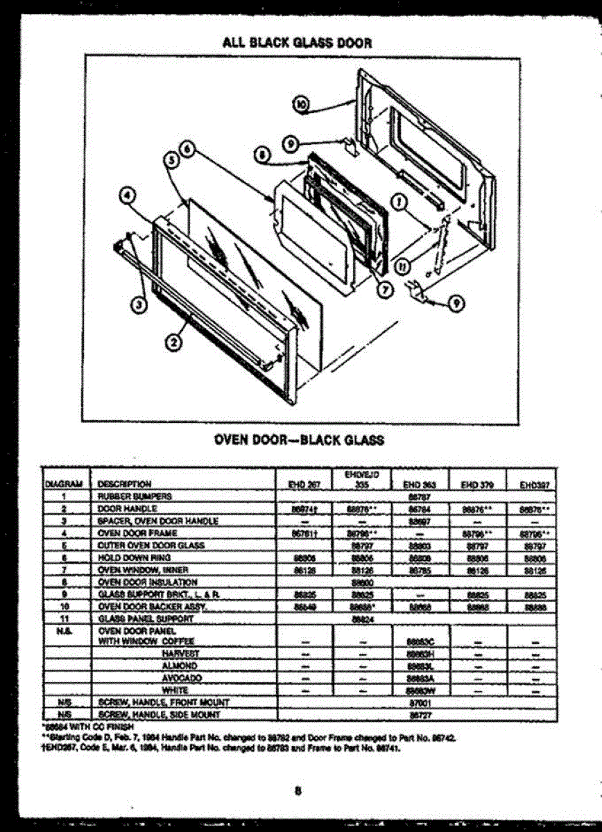 Parts for Amana EHD335: 01 - All Black Glass Door Parts
