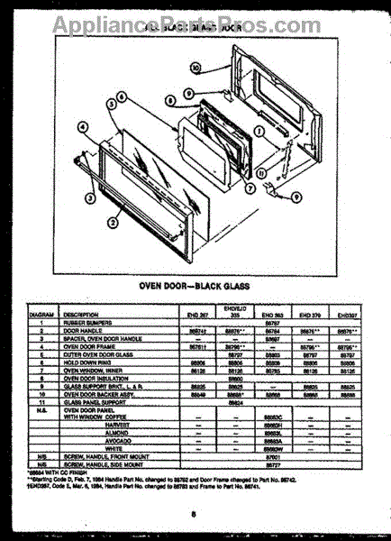 Parts for Amana EHD363: 01 - All Black Glass Door Parts