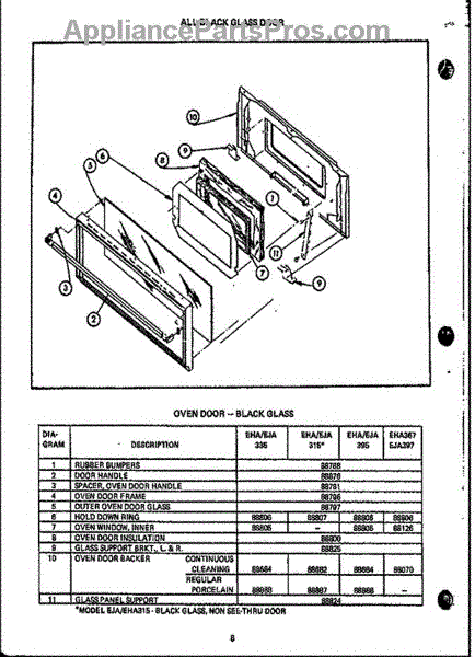 Parts for Amana EJA315: 01 - All Black Glass Door Parts