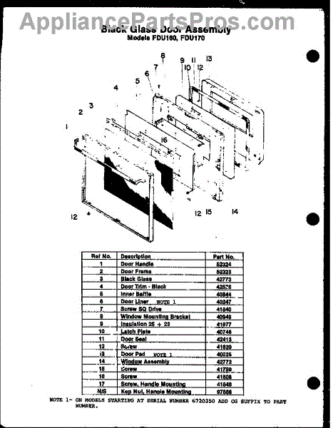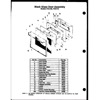 Parts for Amana FDU160: 01 - Black Glass Door Assy Parts