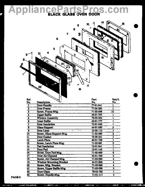 Parts for Amana QDO-695G: 01 - Black Glass Oven Door Parts