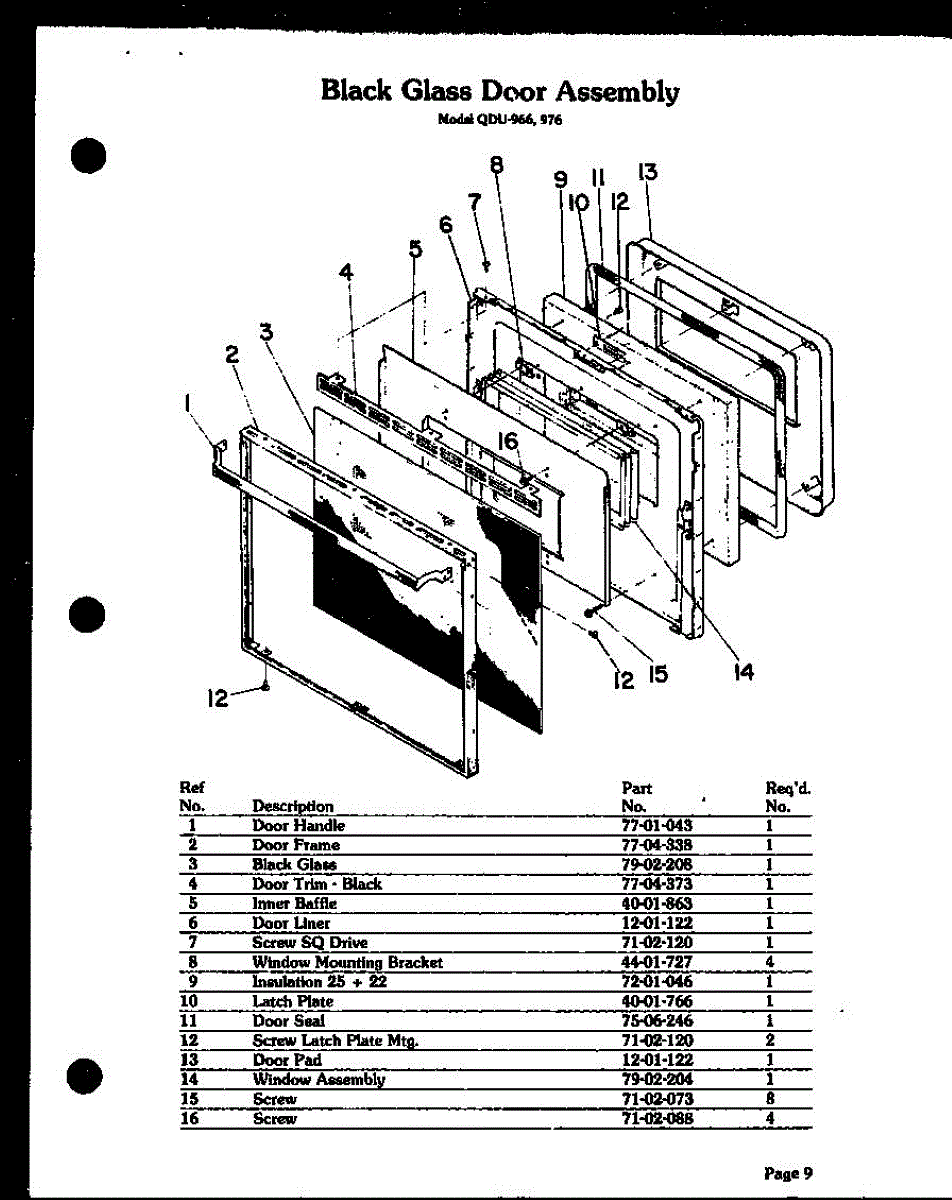 Parts for Amana QDU-966: 01 - Black Glass Door Assy Parts
