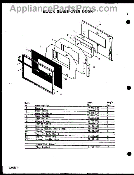 Parts for Amana QKO-661B: 01 - Black Glass Oven Door Parts