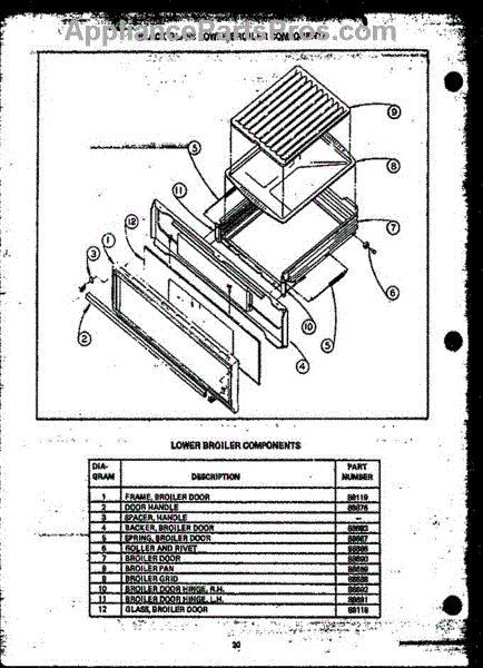 Parts for Amana RMA353: 01 - Black Glass Lower Broiler Components Parts