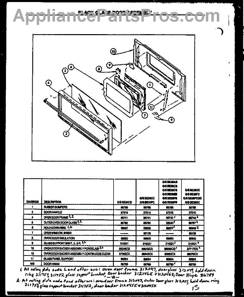 Parts for Amana SBE24CC: 01 - Black Glass Door Assy Parts