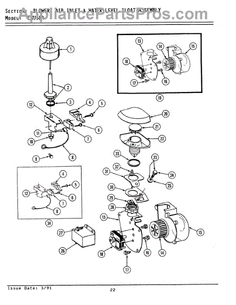 Parts for Maytag EWU384: 01 - Blower / Air Inlet & Water Level Float Parts