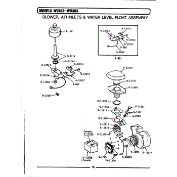 Parts for Maytag WU303: 01 - Blower / Air Inlet & Water Level Float Parts