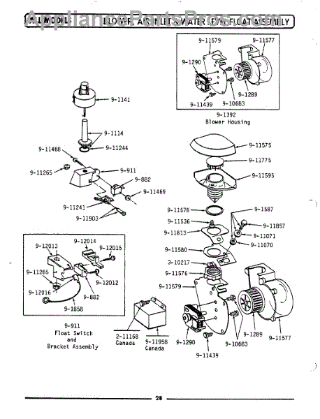 Parts for Maytag WU501: 01 - Blower / Air Inlet & Water Level Float Parts
