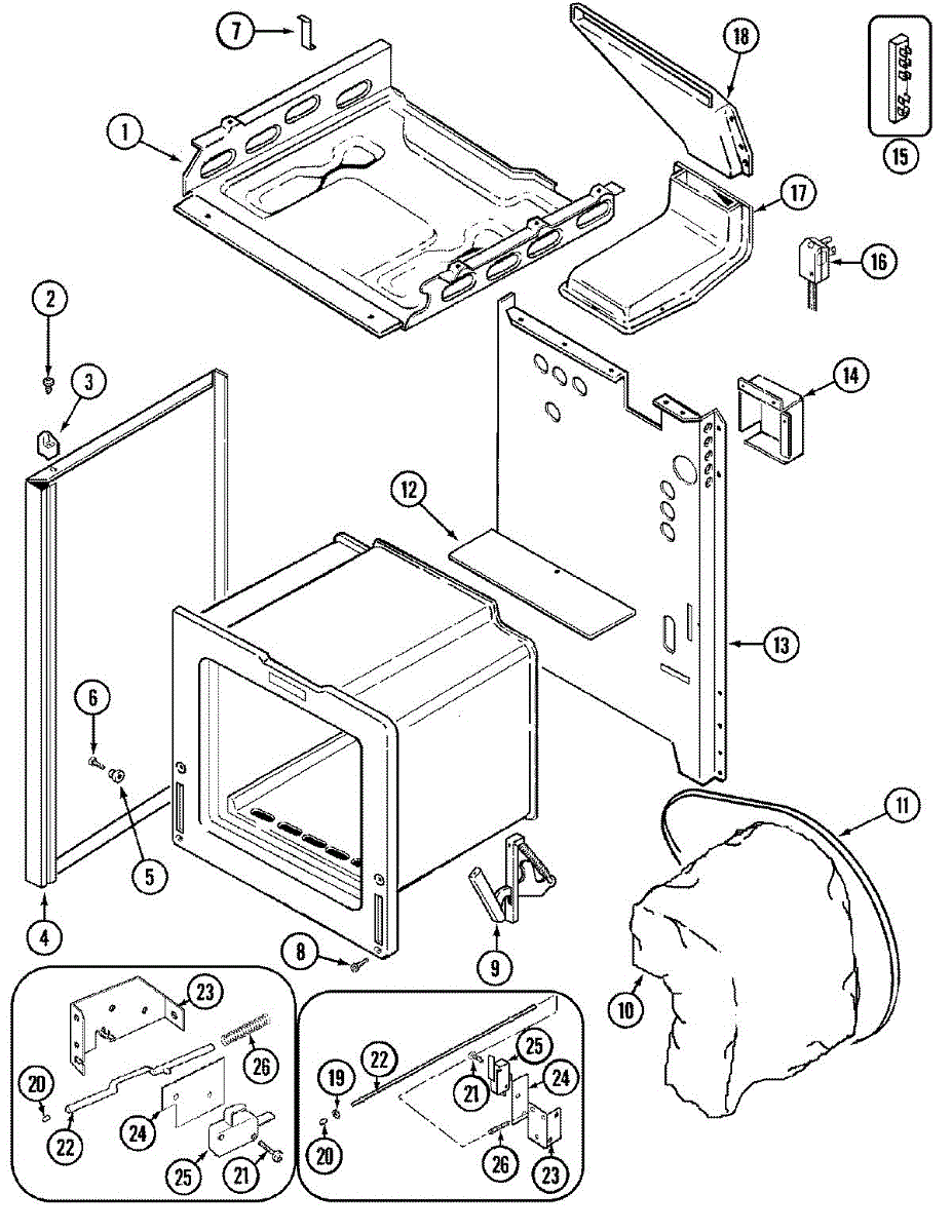 Spacer that maintains proper spacing between range components to prevent rubbing and misalignment. Replace if cracked, broken, or missing during repairs.