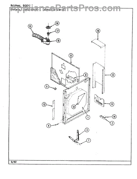 This factory fastener secures panels, trim, or brackets on your appliance. Replacing a missing or stripped screw restores a snug, rattle-free fit and keeps components aligned for proper operation and a clean, finished appearance.