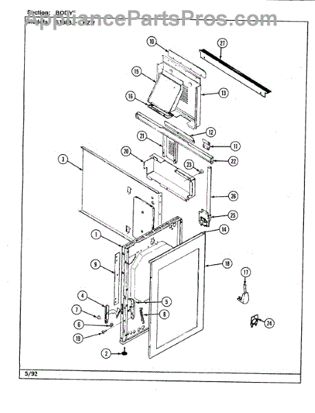 This factory fastener secures panels, trim, or brackets on your appliance. Replacing a missing or stripped screw restores a snug, rattle-free fit and keeps components aligned for proper operation and a clean, finished appearance.