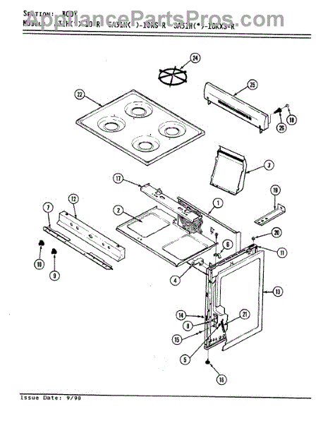 Metal grounding screw for electric ranges and ovens. Secures electrical grounding connections. Replace if stripped, corroded, or missing.