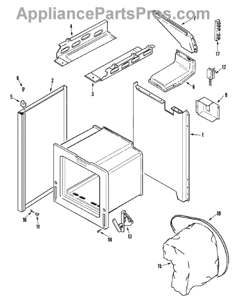 This factory screw secures appliance components to their mounting points. Replace missing, worn, or stripped hardware to restore a tight fit, proper alignment, and quieter operation across the affected assembly.