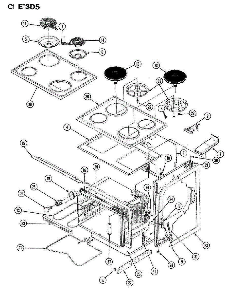 Shallow metal pan that sits below burner elements to catch grease and food spills. Replace when cracked, rusted, discolored, or warped for easier cleanup.