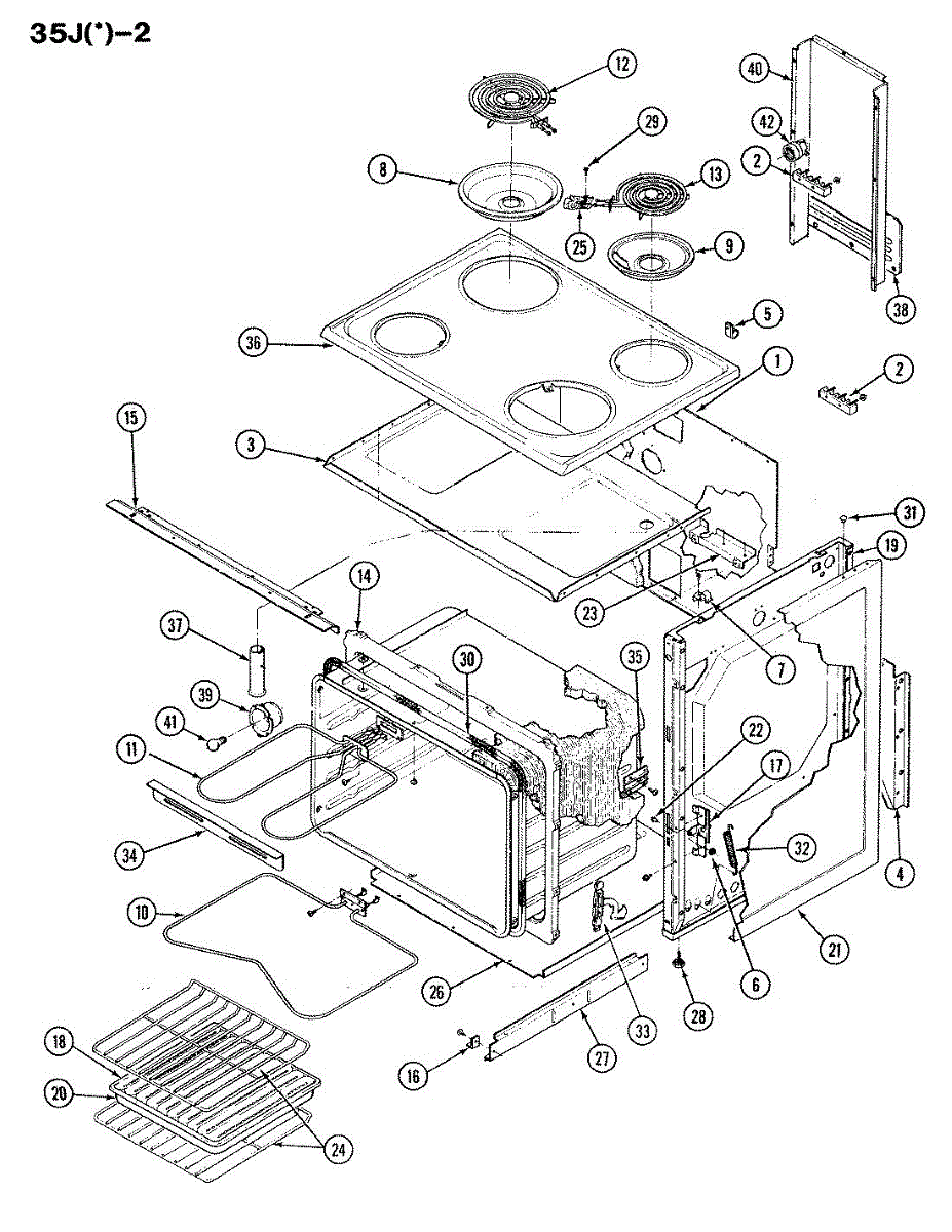 Shallow metal pan that sits below burner elements to catch grease and food spills. Replace when cracked, rusted, discolored, or warped for easier cleanup.