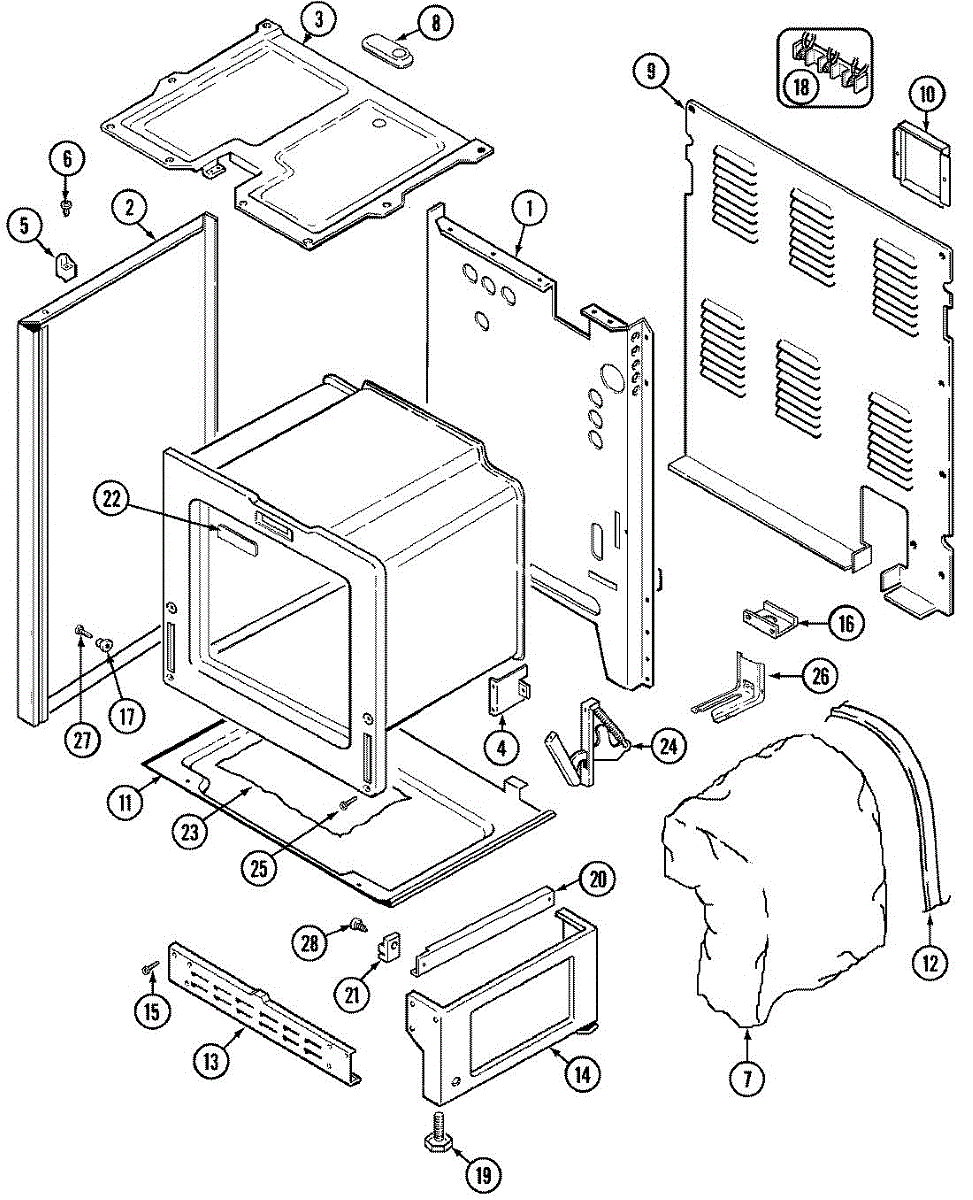 Anti-tip bracket bolts to the floor behind your range to prevent tipping. Replace if missing, bent, or damaged during moving or installation.