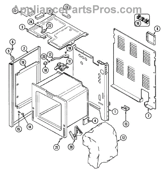 Mounting screw secures panels, brackets, and components inside your oven. Replace missing, stripped, or damaged screws to restore proper fit.