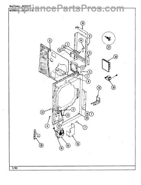 This factory fastener secures panels, trim, or brackets on your appliance. Replacing a missing or stripped screw restores a snug, rattle-free fit and keeps components aligned for proper operation and a clean, finished appearance.