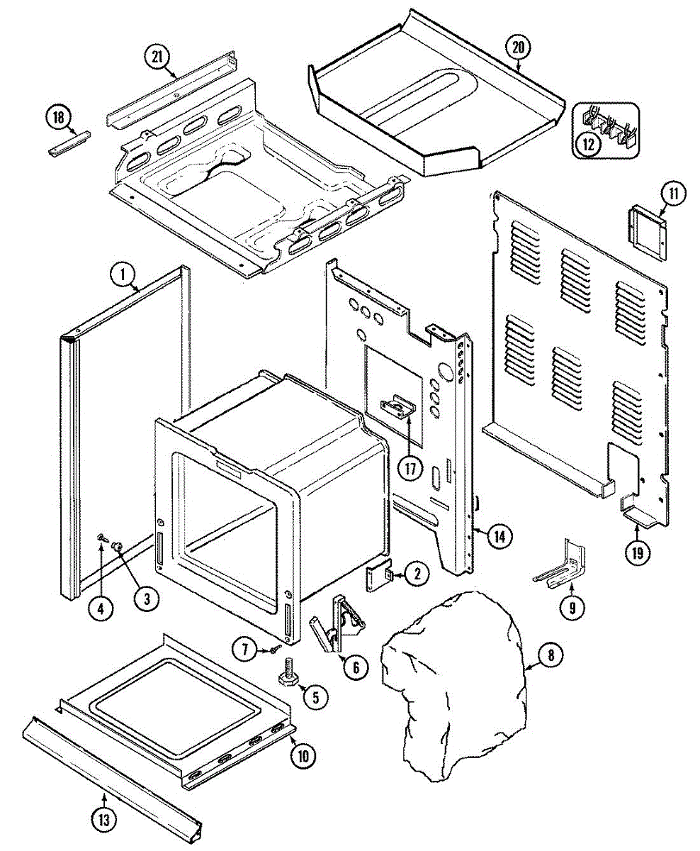 Anti-tip bracket bolts to the floor behind your range to prevent tipping. Replace if missing, bent, or damaged during moving or installation.