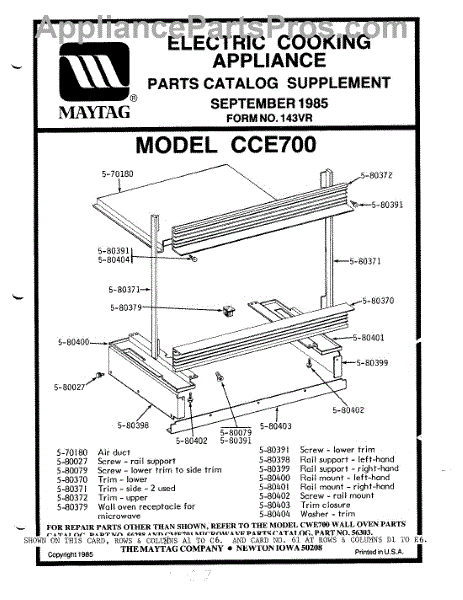 Parts for Maytag CCE700: 01 - Body Parts