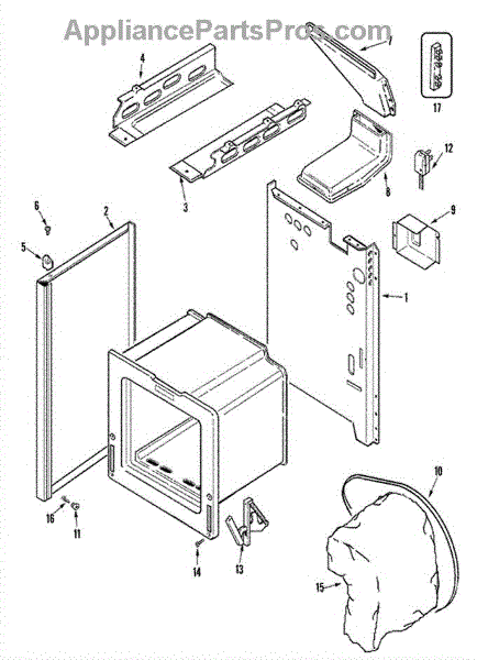This factory screw secures appliance components to their mounting points. Replace missing, worn, or stripped hardware to restore a tight fit, proper alignment, and quieter operation across the affected assembly.