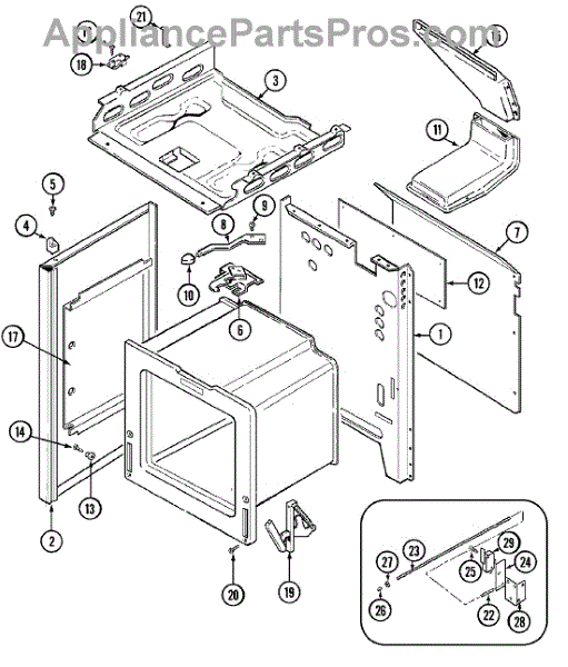 This factory screw secures appliance components to their mounting points. Replace missing, worn, or stripped hardware to restore a tight fit, proper alignment, and quieter operation across the affected assembly.