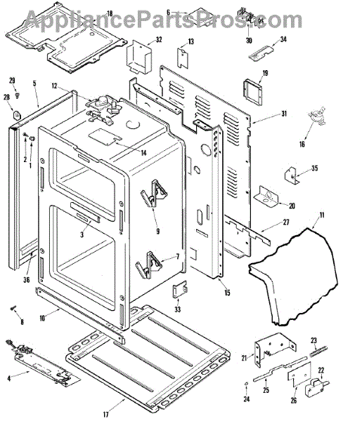 This factory screw secures appliance components to their mounting points. Replace missing, worn, or stripped hardware to restore a tight fit, proper alignment, and quieter operation across the affected assembly.